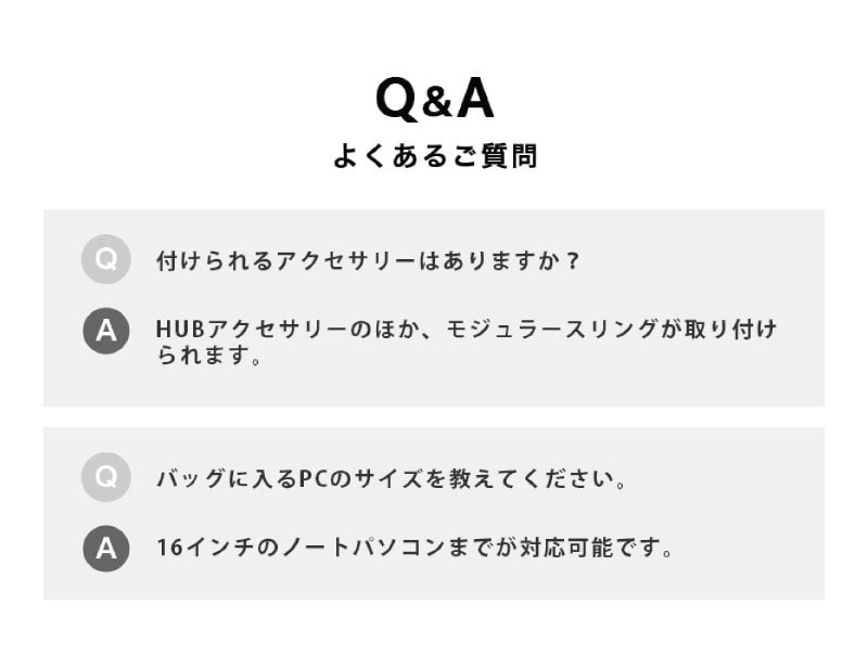 [メインコンパートメント内]ファスナーポケット×1、オープンポケット×2、取り付けループ×9