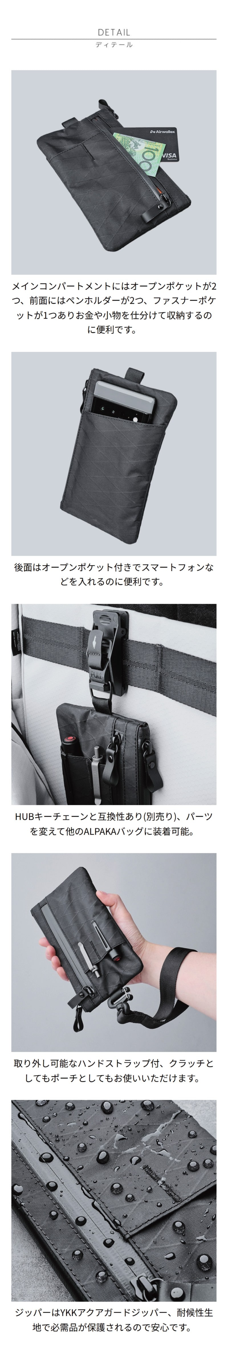 仕様 前面:ファスナーポケット×1、ペンホルダー×2、内側:オープンポケット×2、後面:オープンポケット×1