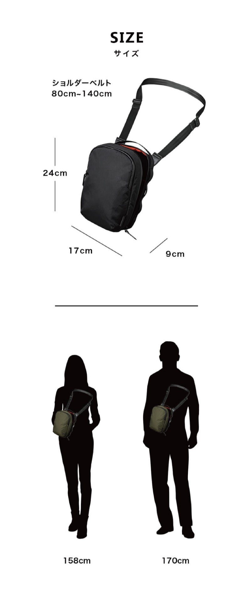 サイズ (約)[本体]タテ24cm×ヨコ17cm×マチ9cm、ショルダーベルト 最大80cm~140cm