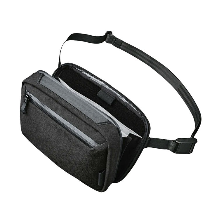 仕様 前面:ファスナーポケット×1、メインコンパートメント:ファスナーポケット×1 (内側にオープンポケット×3)、マグネットオープンポケット×1、タブレット用ポケット×1、 オープンポケット×4、ペンホルダー×1、側面:持ち手×1、取り外し可能ショルダーベルト×1