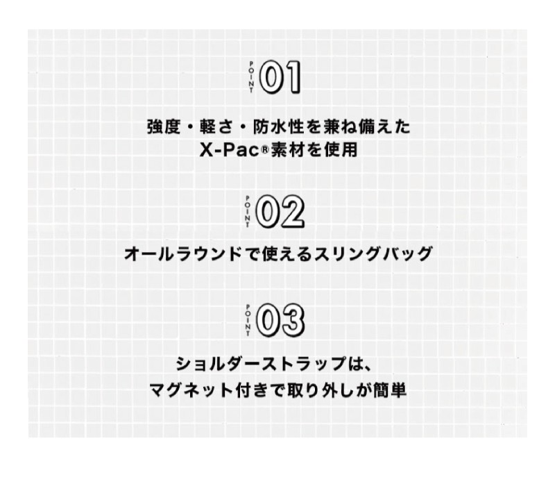 素材 [表地]本体:ナイロン(X-PAC(R) VX21)、背面:ナイロン(840Dバリスティックナイロン)