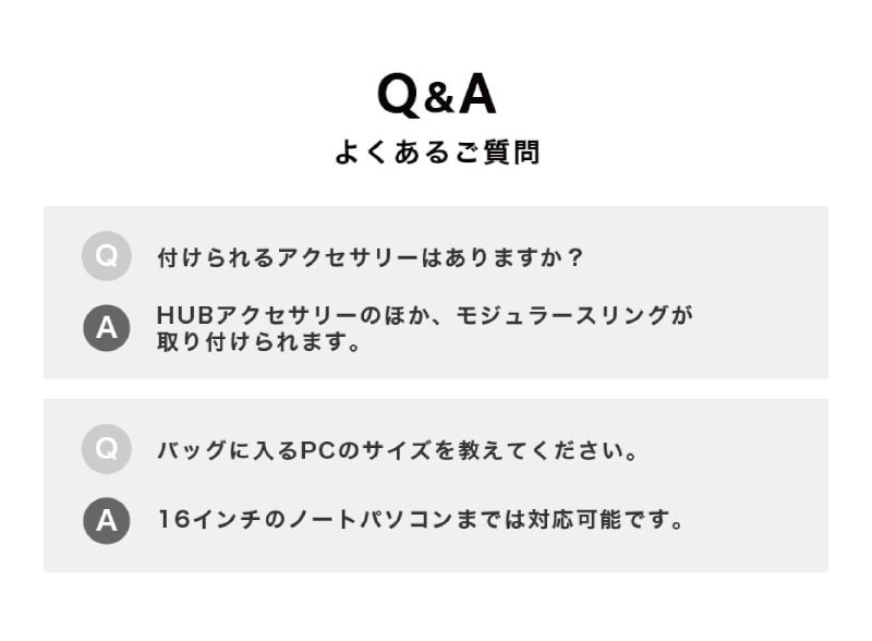 メインコンパートメント内 :ファスナーポケット×1、オープンポケット×2、取り付けループ×9