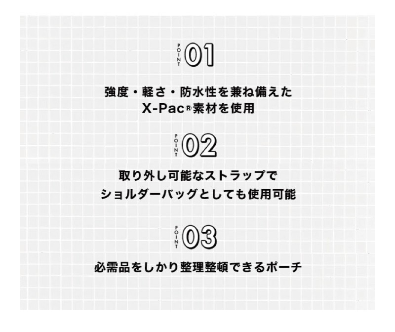 素材 [表地]ナイロン(X-Pac(R) RX36)[裏地]ポリエステル(200D リップストップポリエステル)