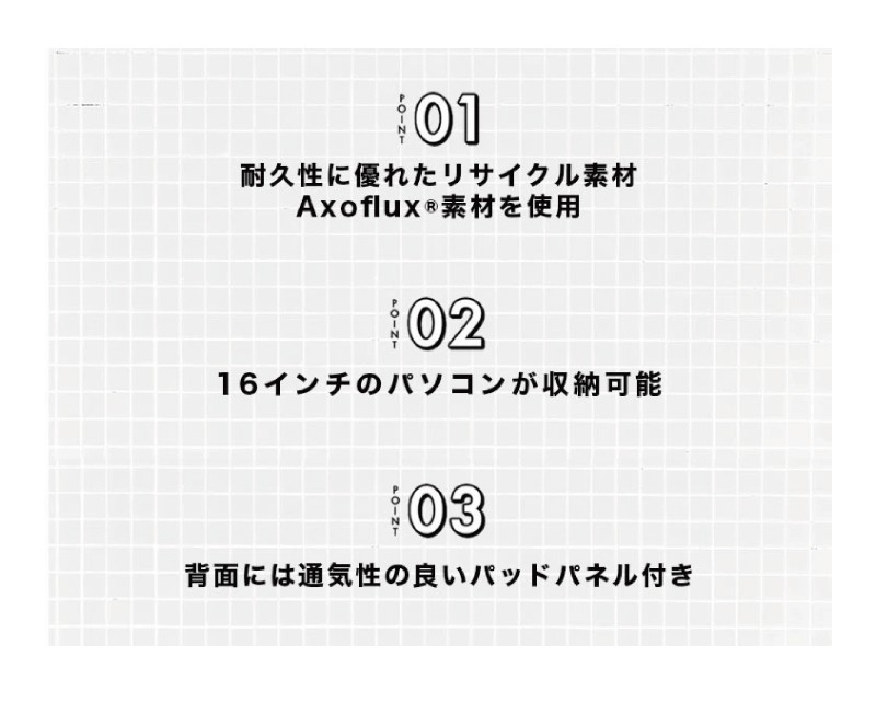 素材 [表地]ナイロン( Axoflux(TM) 400D リップストップナイロン )