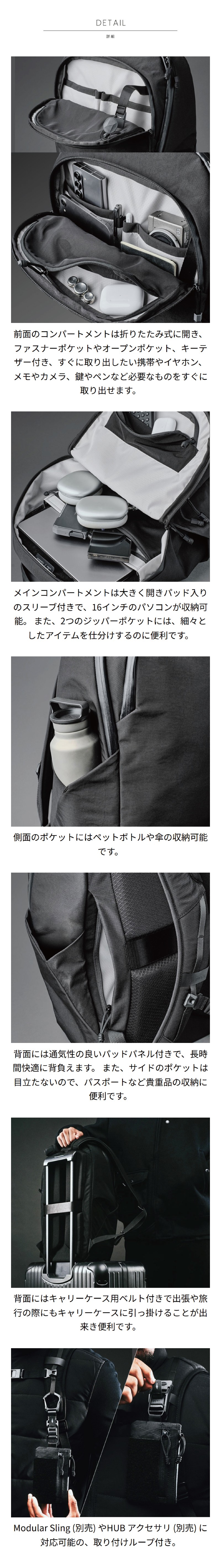 仕様 前面コンパートメント:ファスナーポケット×1、オープンポケット×2、ペンホルダー×2、キーテザー×1