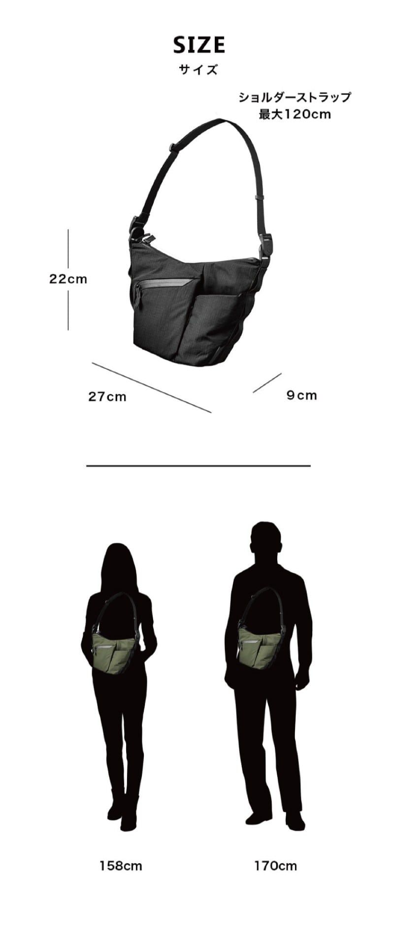 サイズ (約)[本体]タテ22cm×ヨコ27cm×マチ9cm、ショルダーストラップ 最小62cm~最大120cm