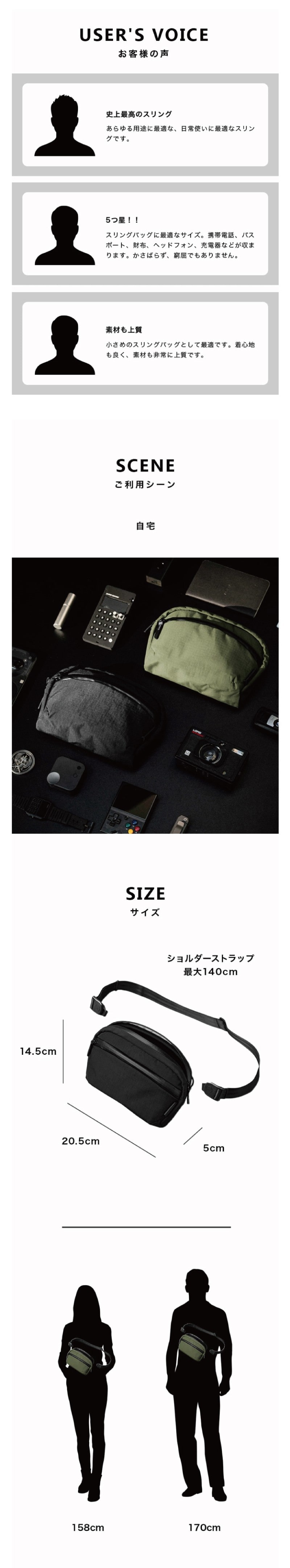 サイズ (約)[本体]タテ14.5cm×ヨコ20.5cm×マチ5cm [ショルダーベルト]80~140cm