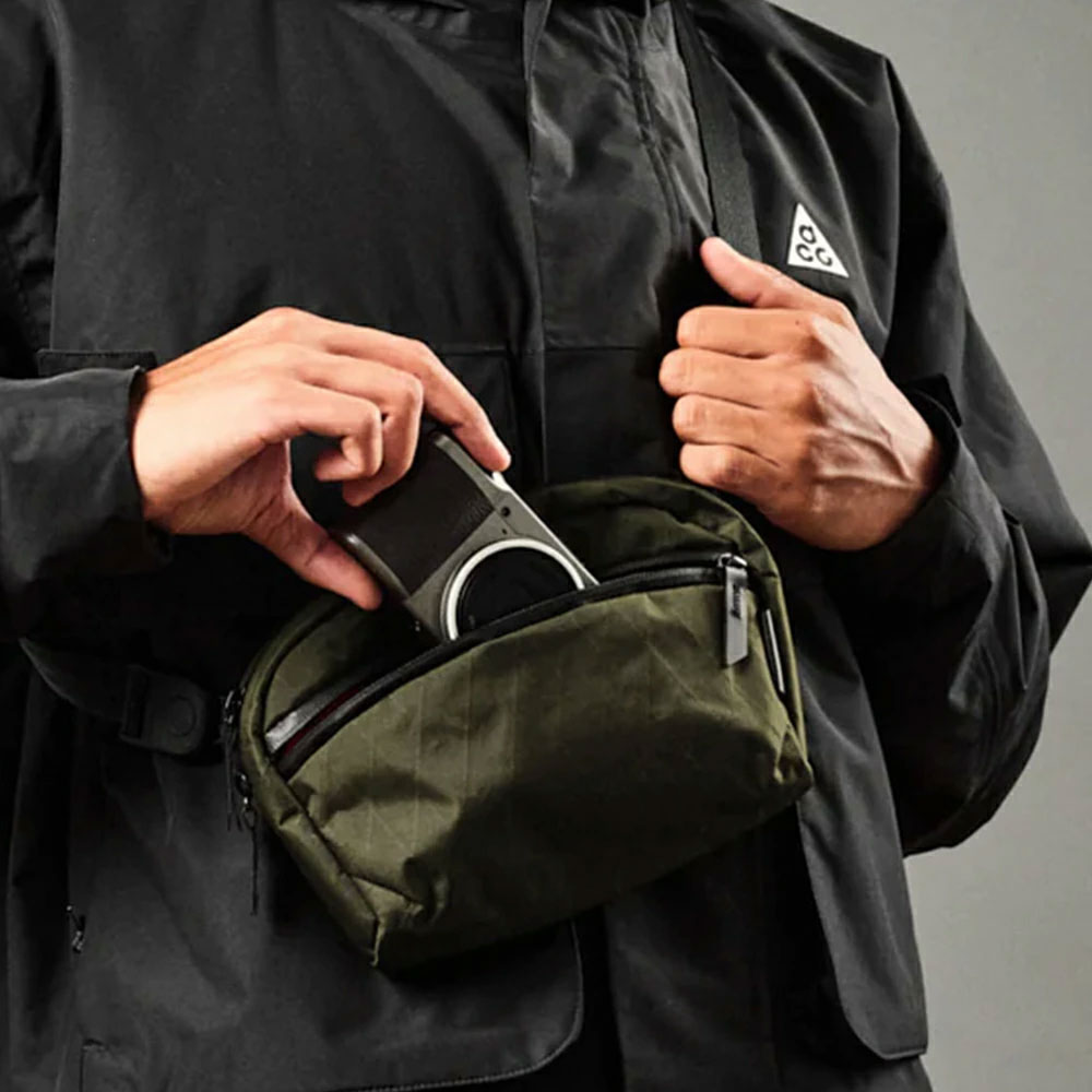 ショルダーストラップは取り外し可能なマグロックアタッチメント付きで簡単に取り外しでき、スリングバッグとしてもポーチとしてもお使いいただけます。
