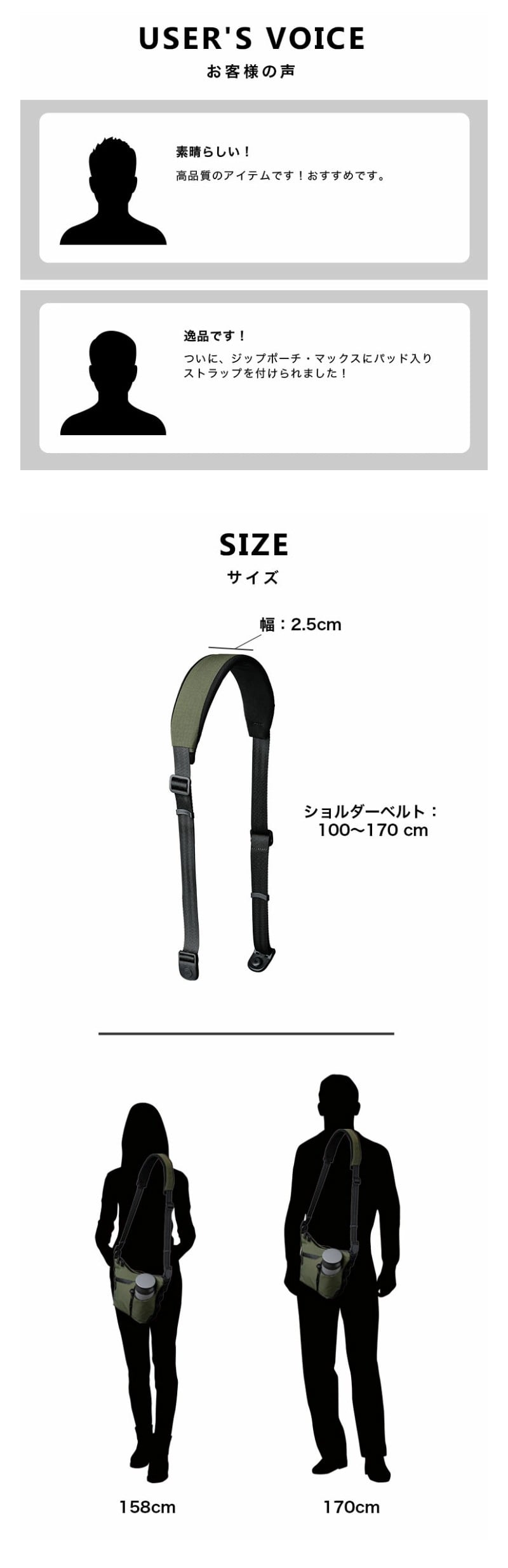 サイズ (約)[ショルダーベルト]100~170 cm、幅 2.5 cm