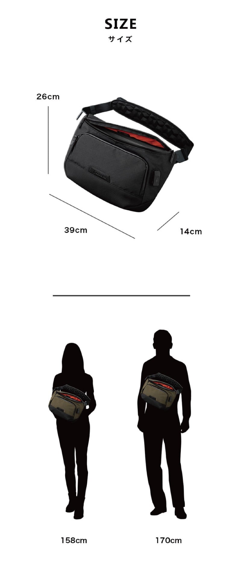 仕様 [前面]ファスナーポケット×1(オープンポケット×4、メッシュポケット×1、HUBキーチェーン×1)