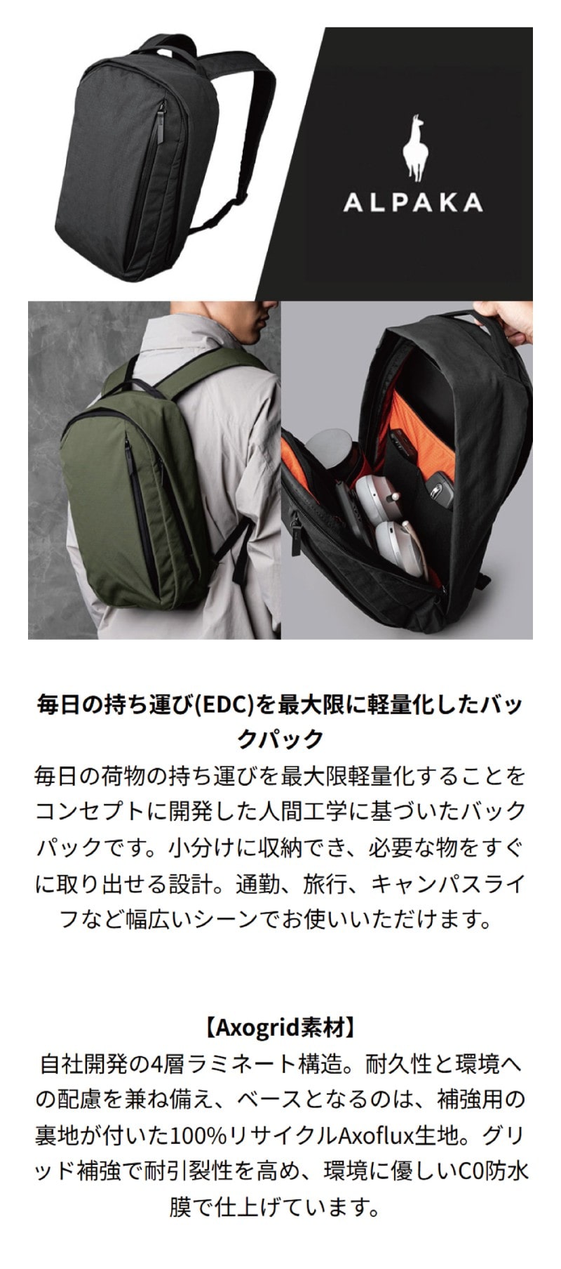 ![[ALPAKA]METRO BACKPACK AXOGRID アーミーグリーン アーミーグリーン](/img/0196/goods/L/0196-42221403.jpg)