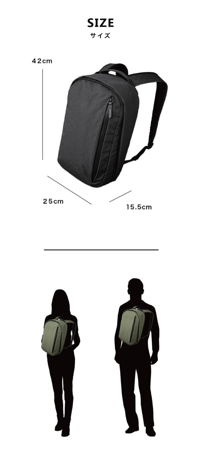 サイズ (約)[本体]タテ42cm×ヨコ25cm×マチ15.5cm