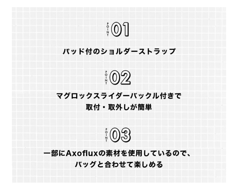 素材 [表地]パッド部分:ナイロン(Axoflux 210D)、ポリプロピレン