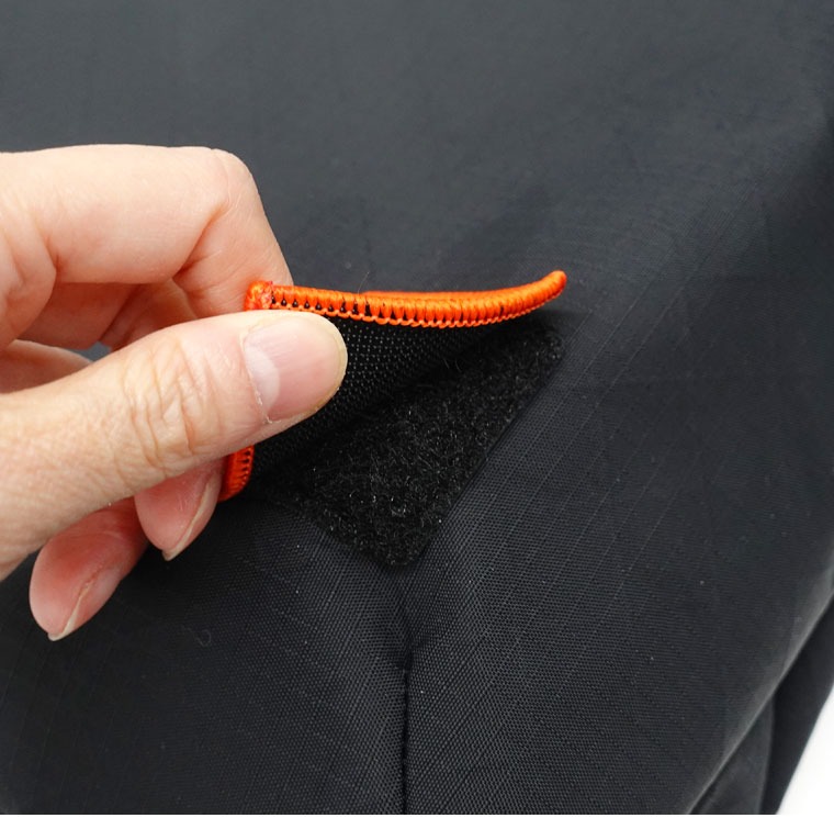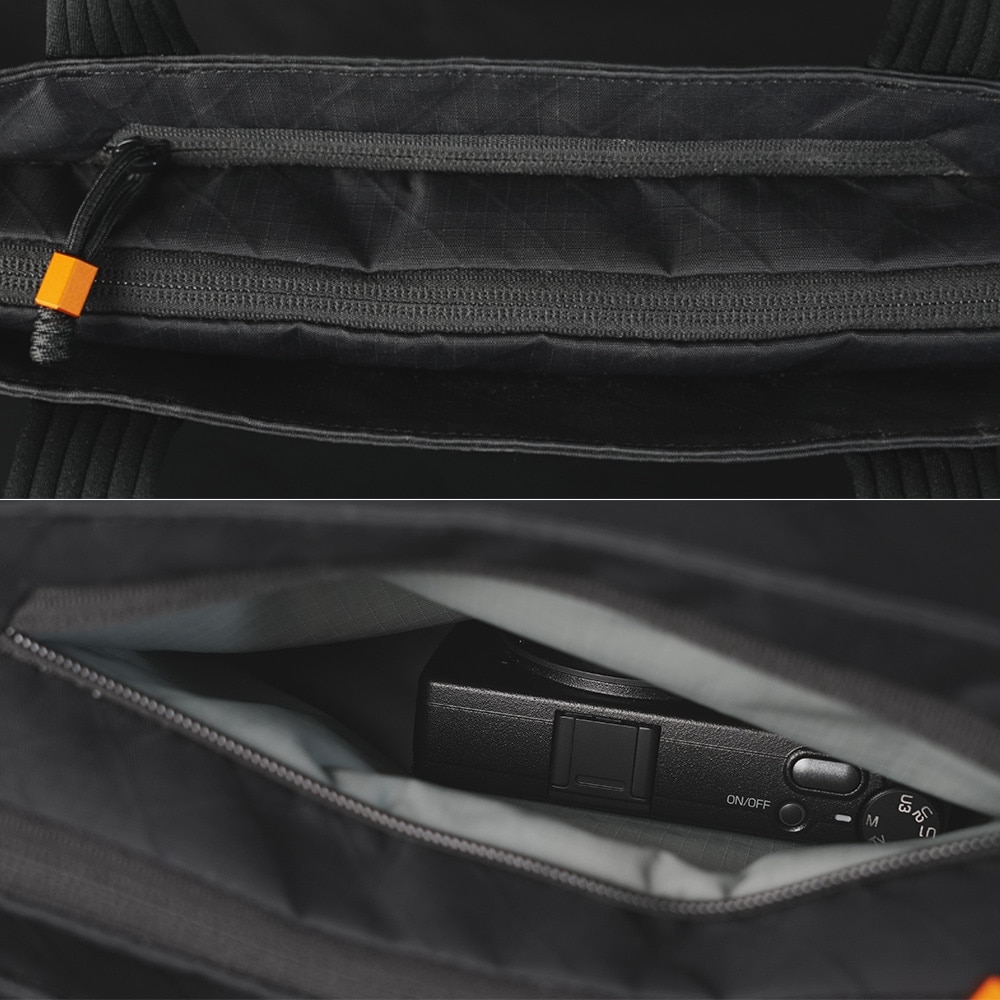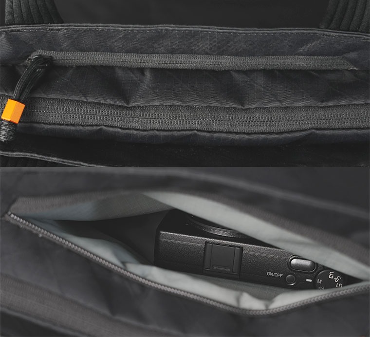 メインコンパートメントの裏側に隠されたファスナーポケット。