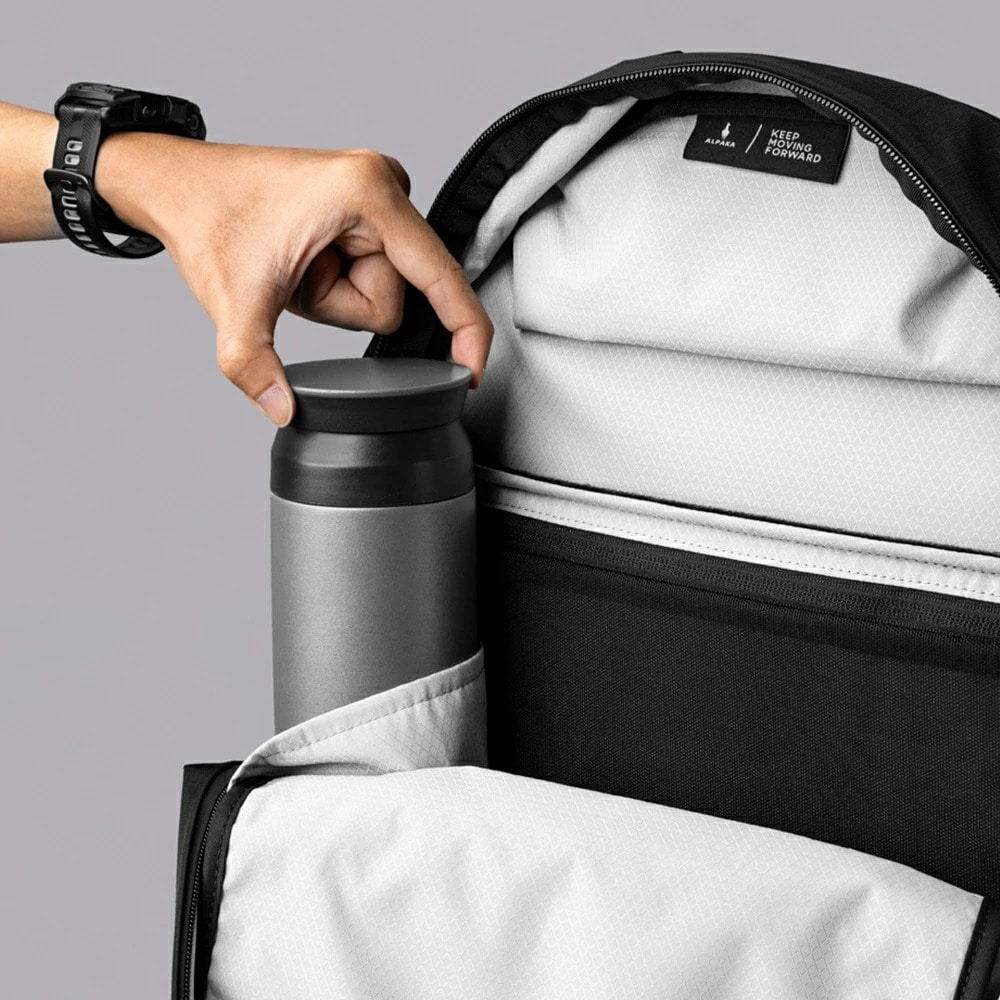 オープンポケット、ファスナーポケット、ボトルポケット搭載で、小分けに整理して収納可能です。