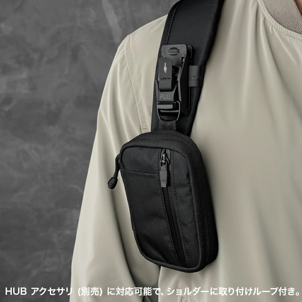 HUB アクセサリ (別売) に対応可能で、ショルダーに取り付けループ付き。