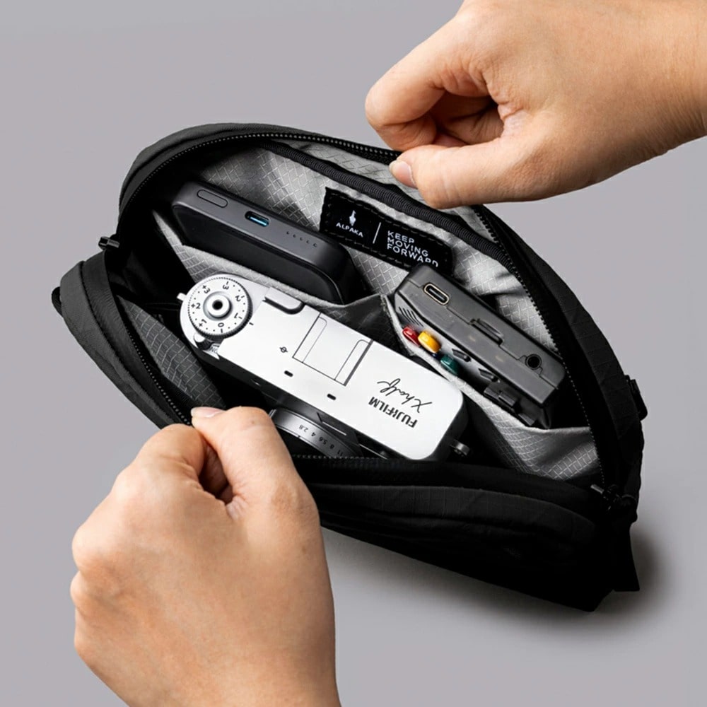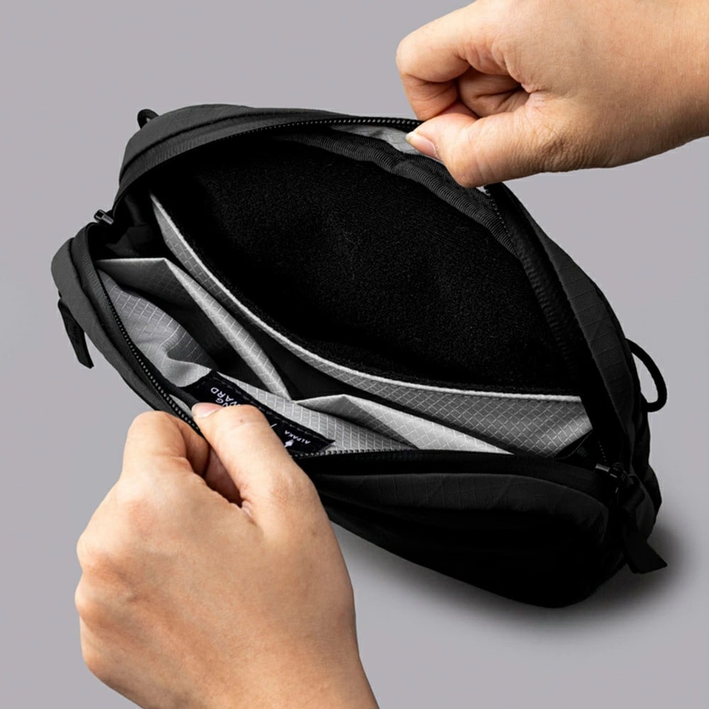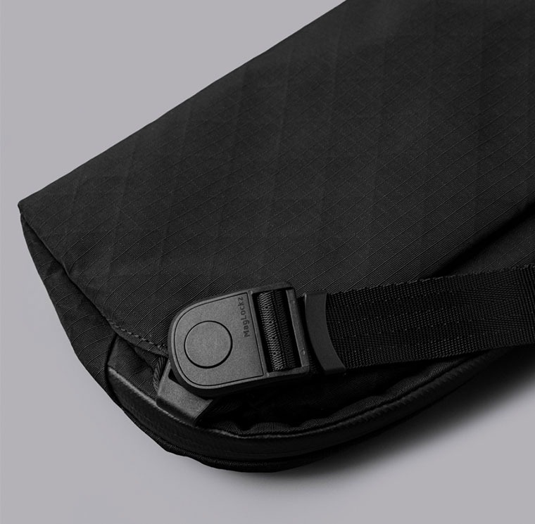 ショルダーストラップは取り外し可能なマグロッククリップ付きで簡単に取り外しでき、スリングバッグとしてもポーチとしてもお使いいただけます。