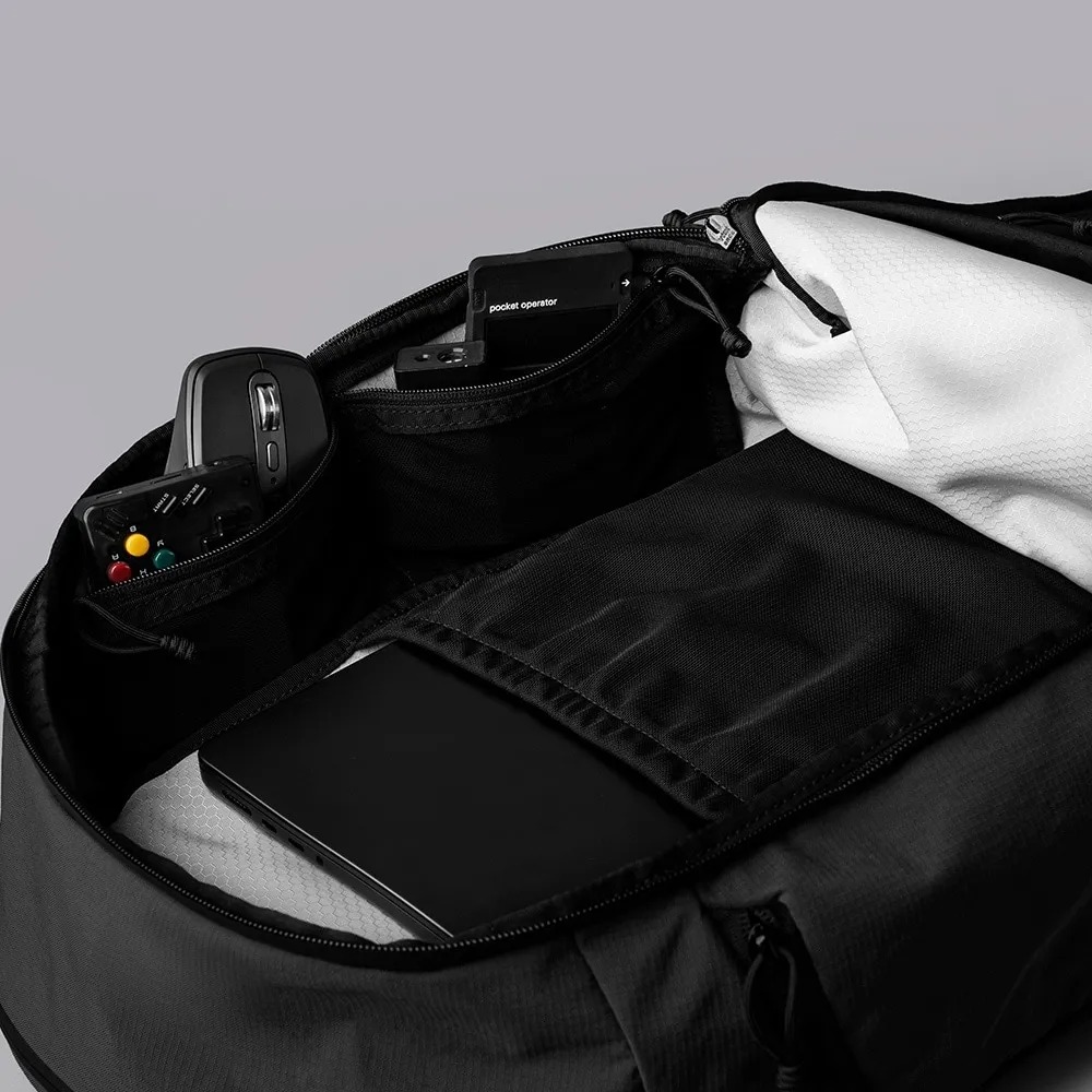 メインコンパートメントはフルオープン仕様で、大容量ながら 細かいポケットの配置で整理して収納できます。