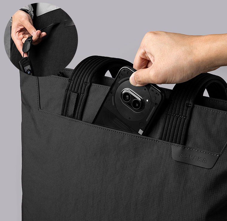 前面の隠しマグネットオープンポケット内にはMODキーテザー付きで、鍵の持ち運びに便利です。