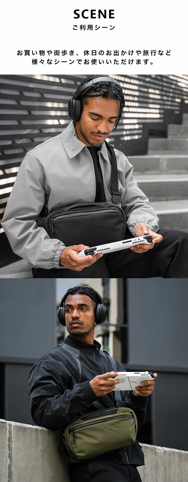 ショルダーストラップを外して、持ち手付きのポーチとしてもお使いいただけます。