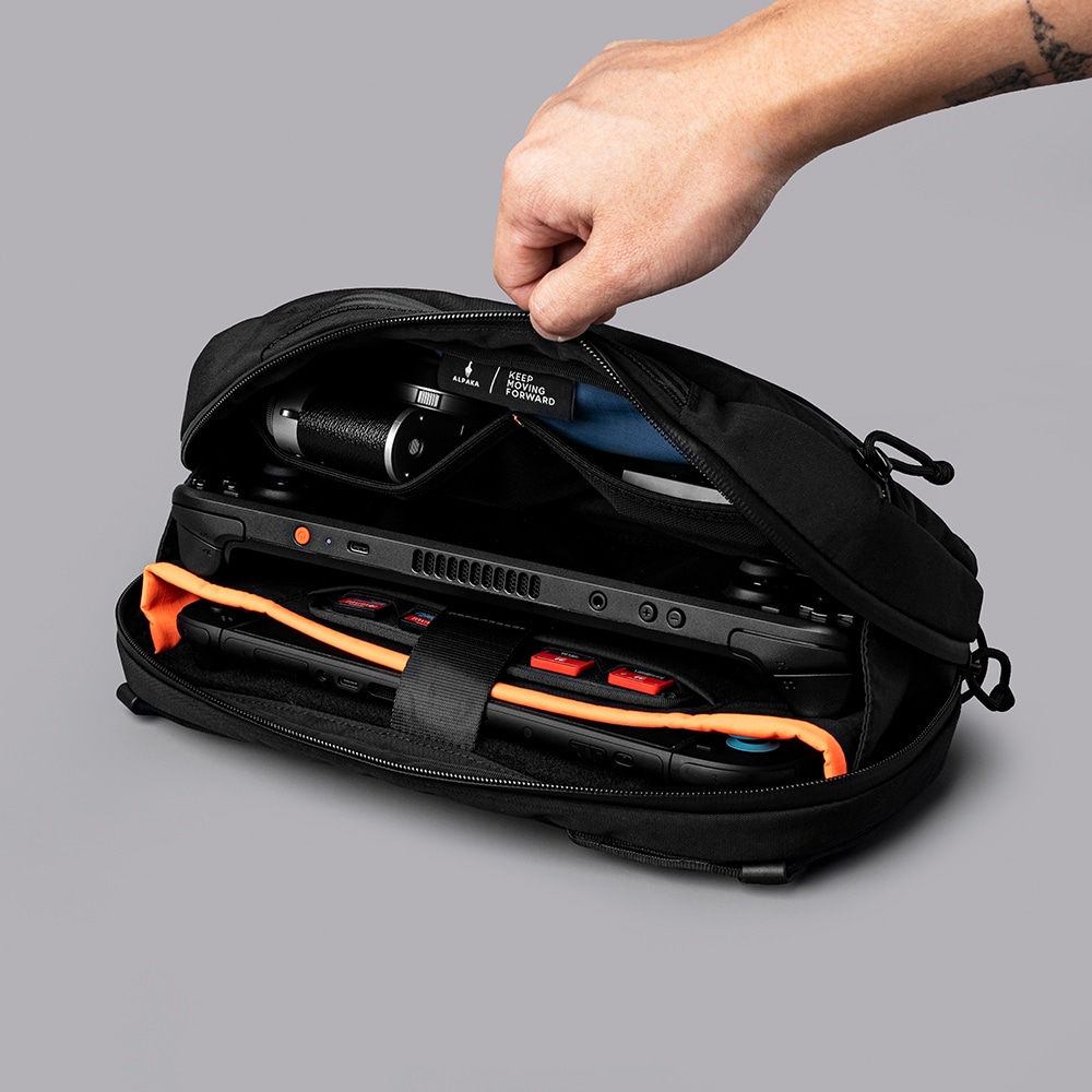 メインコンパ―トメントには、ゲーム機や小型タブレットを収納可能なパッド入りスリーブと、2つのメッシュオープンポケットがあり、ゲーム機はもちろん、その他の必需品も整理して収納できます。
