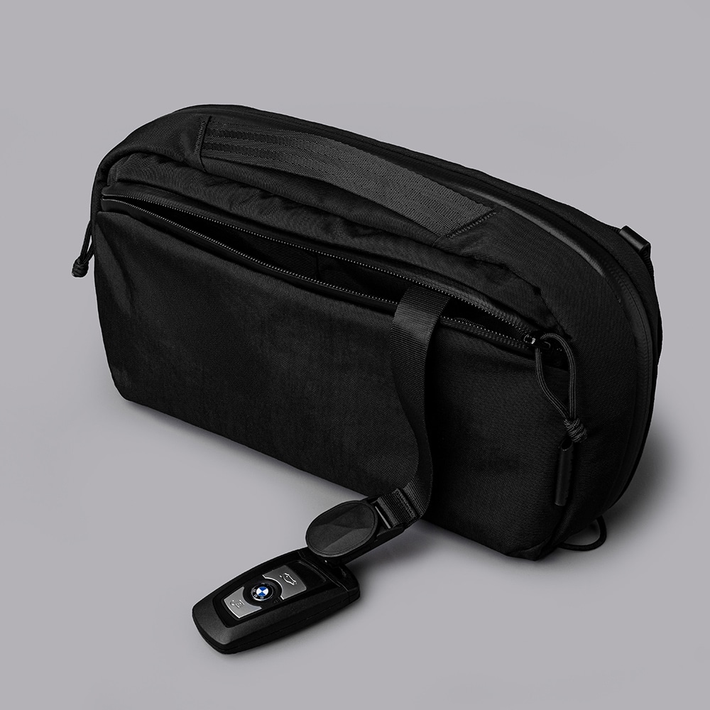 前面のファスナーポケットは仕切り付き2室構造。 中にはMOD キーテザーを搭載、鍵の持ち運びに便利です。