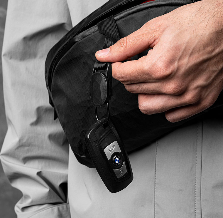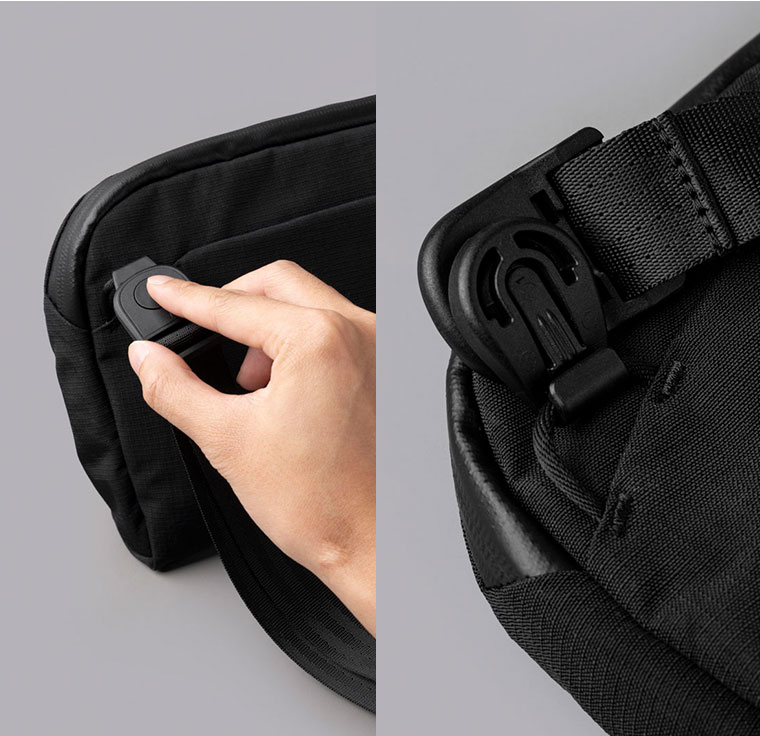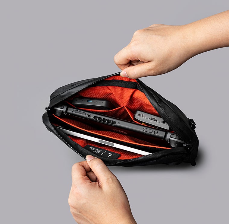 フライトスリングは旅行に持ち運んだり、ストラップを取り外してスタイリッシュなテックポーチとして使用できます。