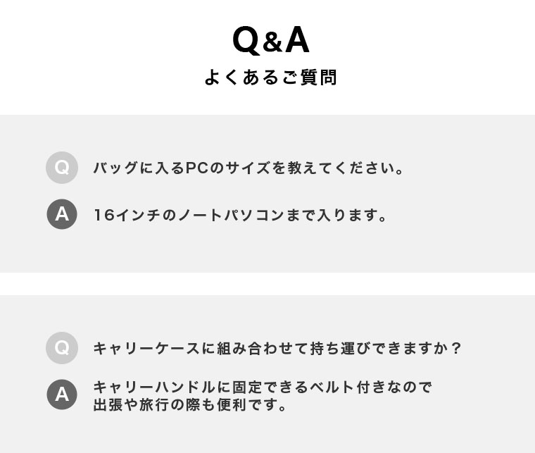 キャリーハンドル用のベルト付で、出張や旅行の際も便利です。