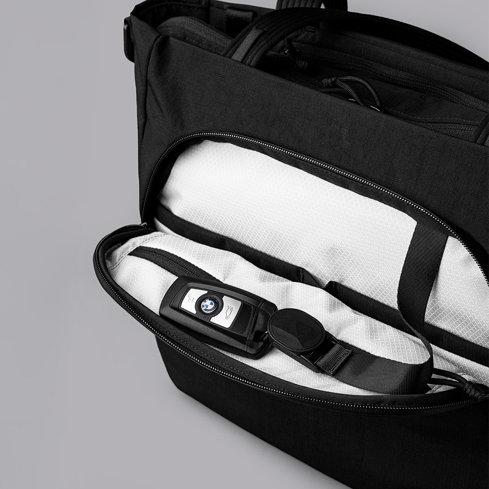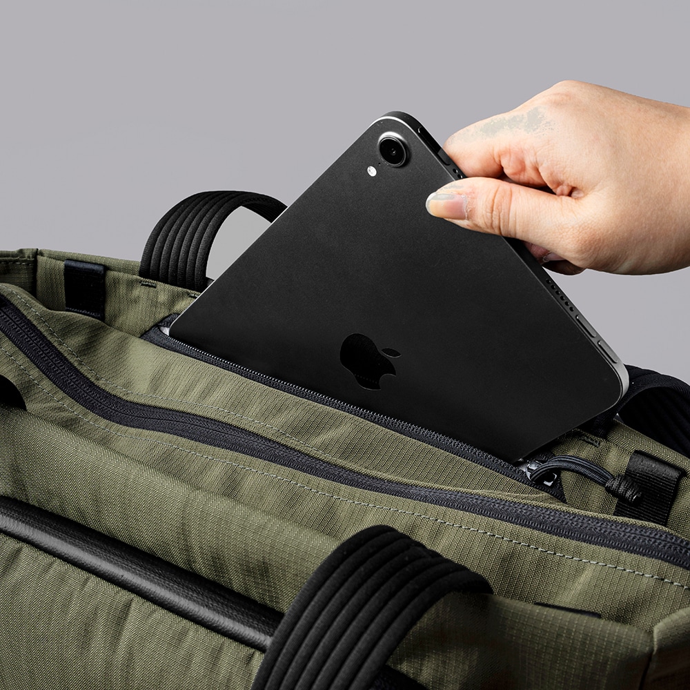 上部には、貴重品の収納に最適なファスナーポケットを備えています。