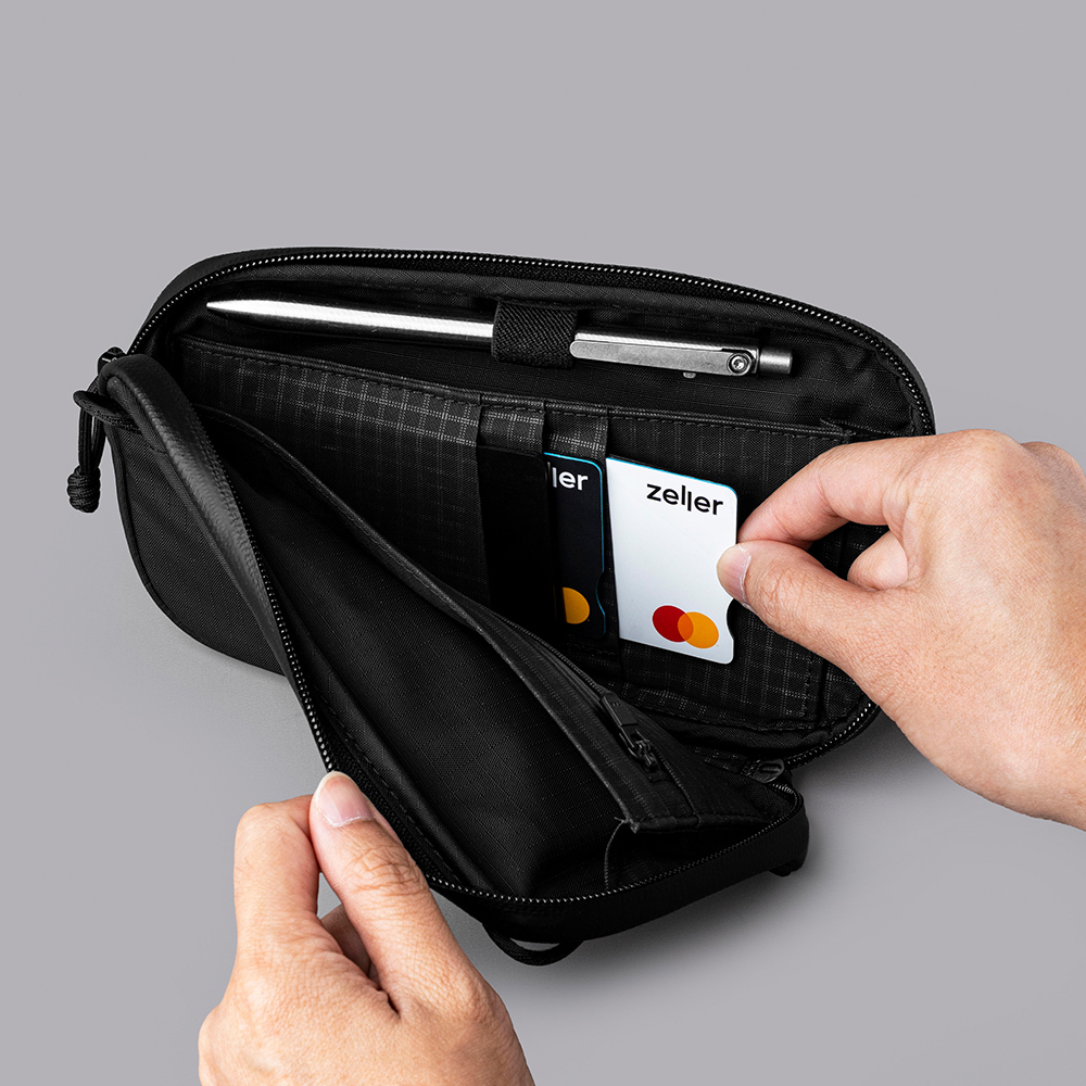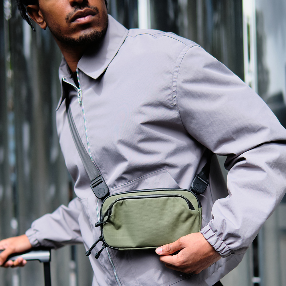 シーンに応じてスリング、ハンドバッグ、ポーチへと姿を変え、日常の外出から旅先のサブバッグまで、スタイルや荷物に合わせて最適な持ち方を選べます。