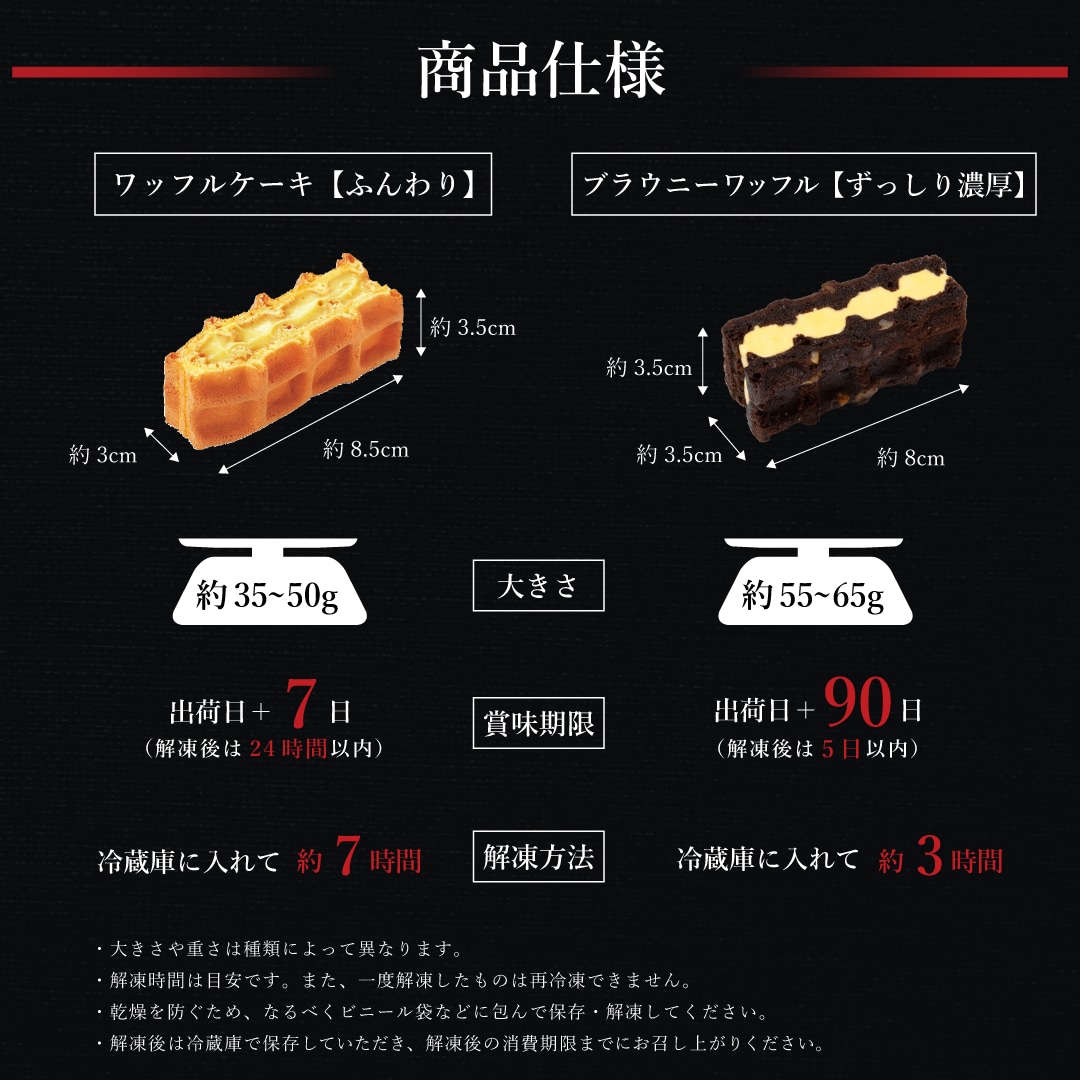 ○ブラウニーワッフル:出荷日+90日、※解凍後は5日