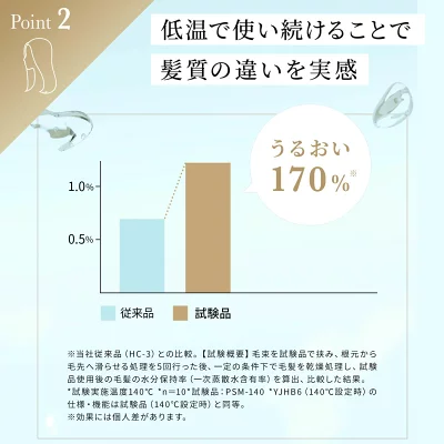 スタイリング時の課題に着目した「ダメージ低減」と「スタイリング力」を両立した保水ヘアアイロン。