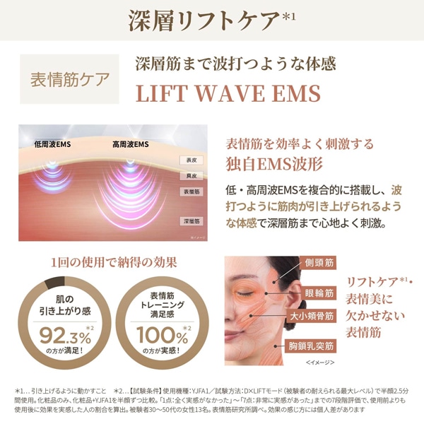 *2……D×LIFTモードにより角質層のすみずみまで温めながら引き上げるように動かすケア