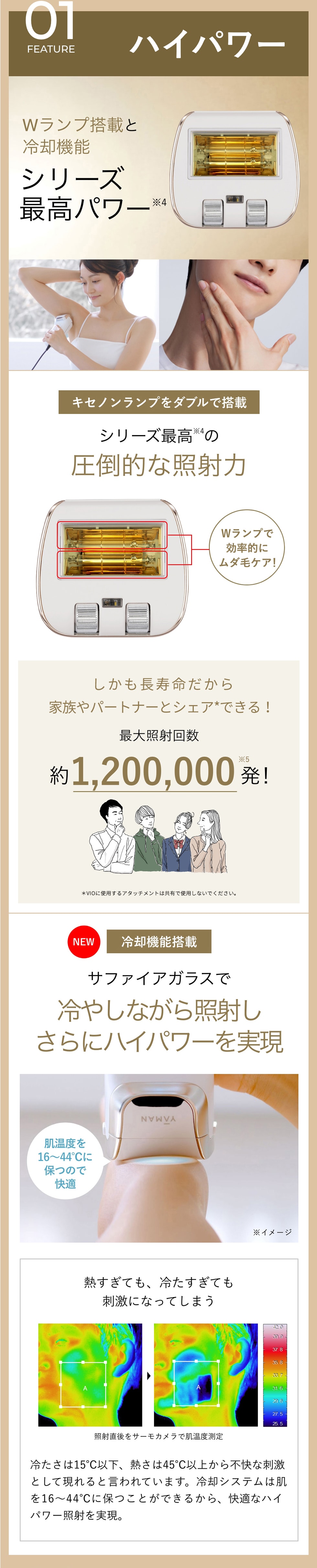 小型※2・軽量※2で使いやすく、照射回数約1,200,000発※2の長寿命ランプ。LEDケアで、うるおい*・ハリ*向上。
