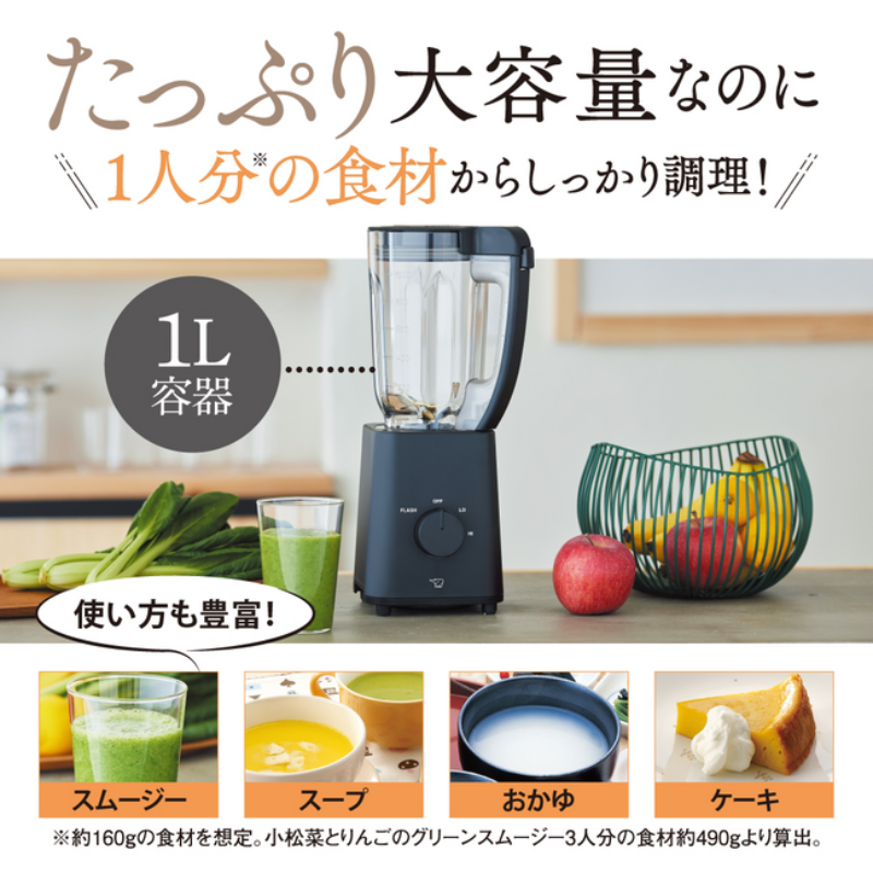 1Lの大容量容器でスムージーをたっぷり作れます。