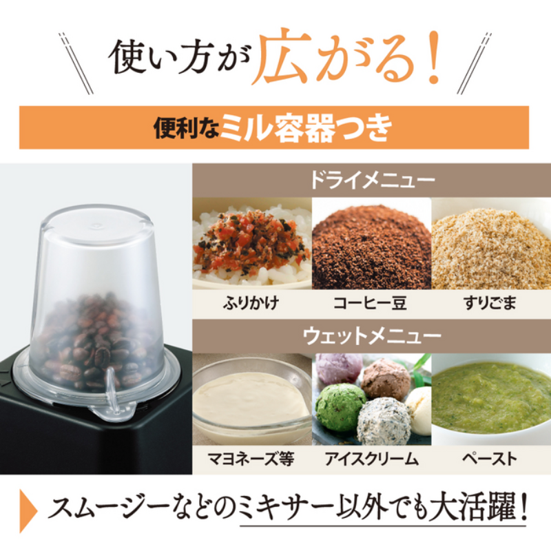 ミル機能つきミキサーは、コーヒー豆のミルにも対応。