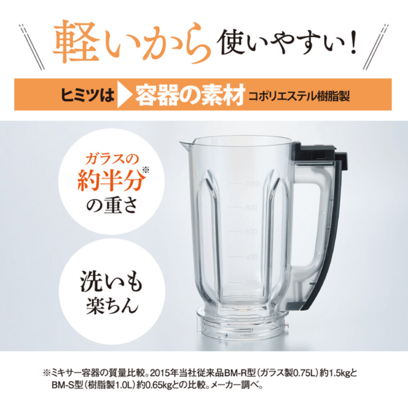 ■重さはガラスの約半分※1。軽くて丈夫※2&たっぷり作れる1Lミキサー容器