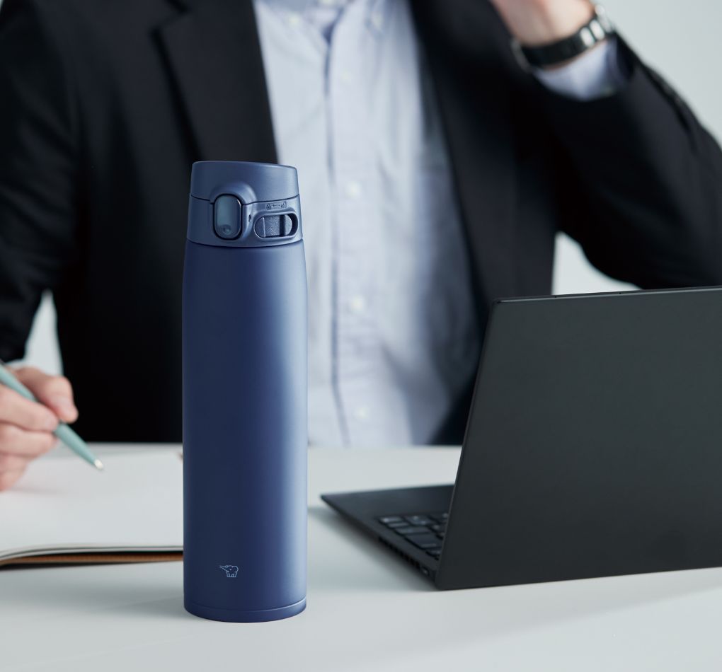 「飛び散り抑制機構」がふたが開ききる前にふたの内側の水滴を落とすので、デスク周りの書類が濡れにくく安心です。