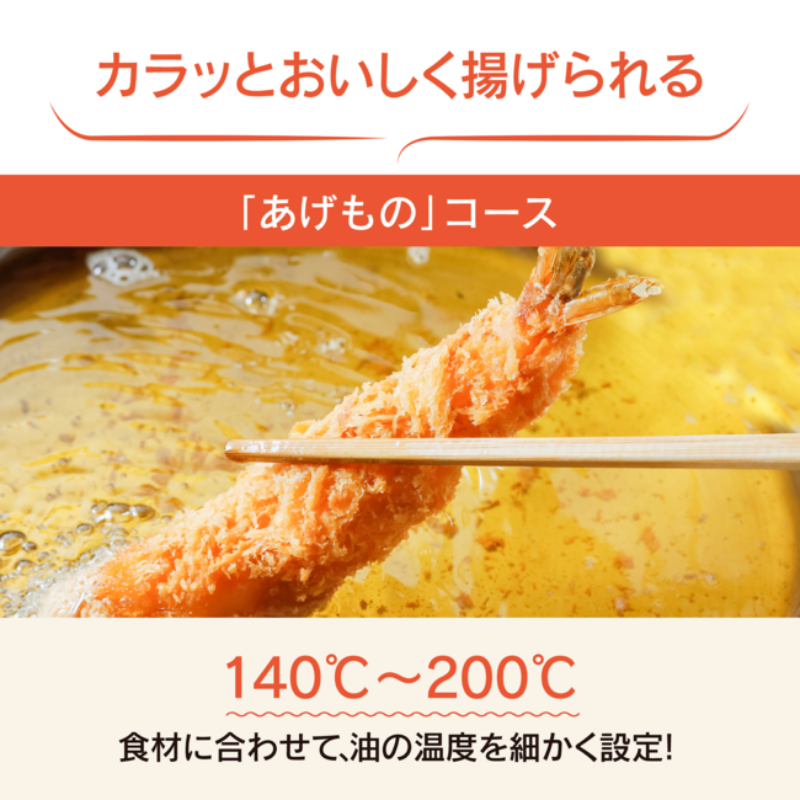 140℃~200℃まできめ細かく温度調節ができる「あげもの」コース