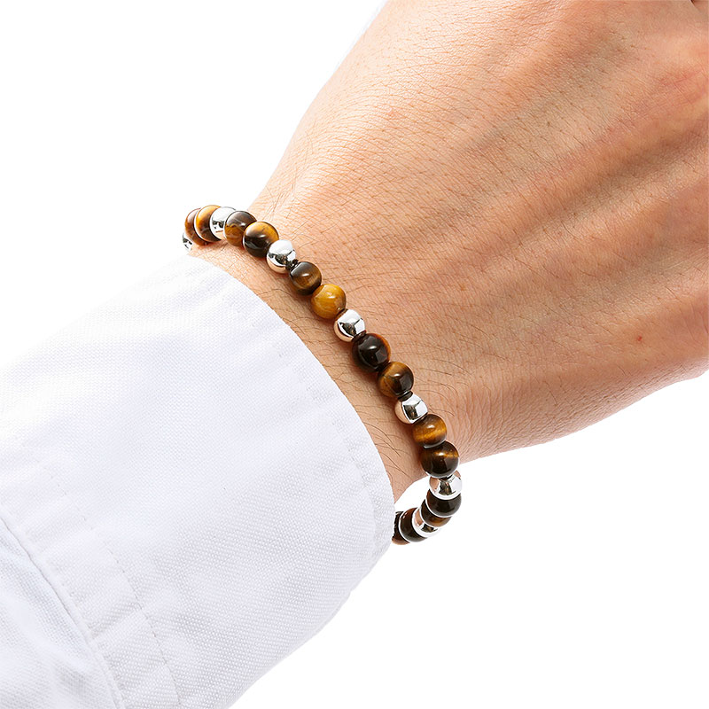 意外な組み合わせがスタイリッシュな 虎目石とシルバーのブレスレット