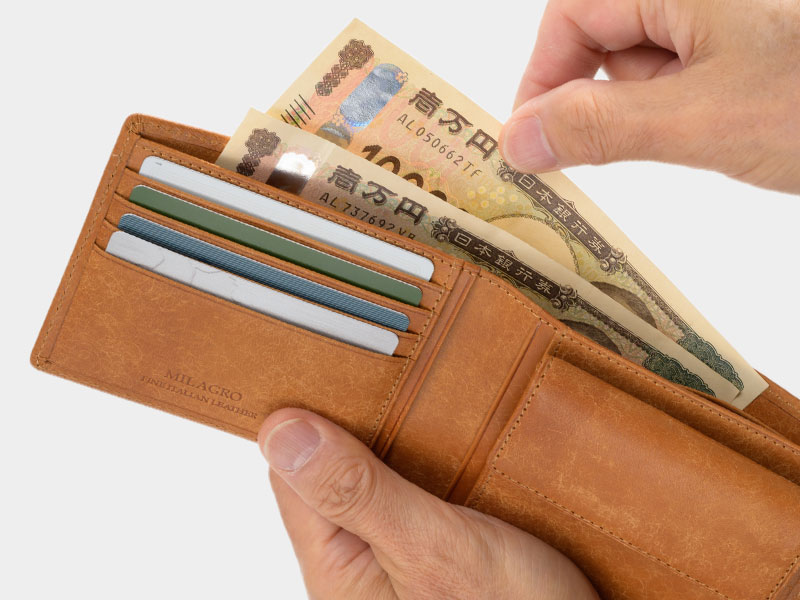 使うことで色気が増していく紳士のイタリアンレザーの二つ折財布