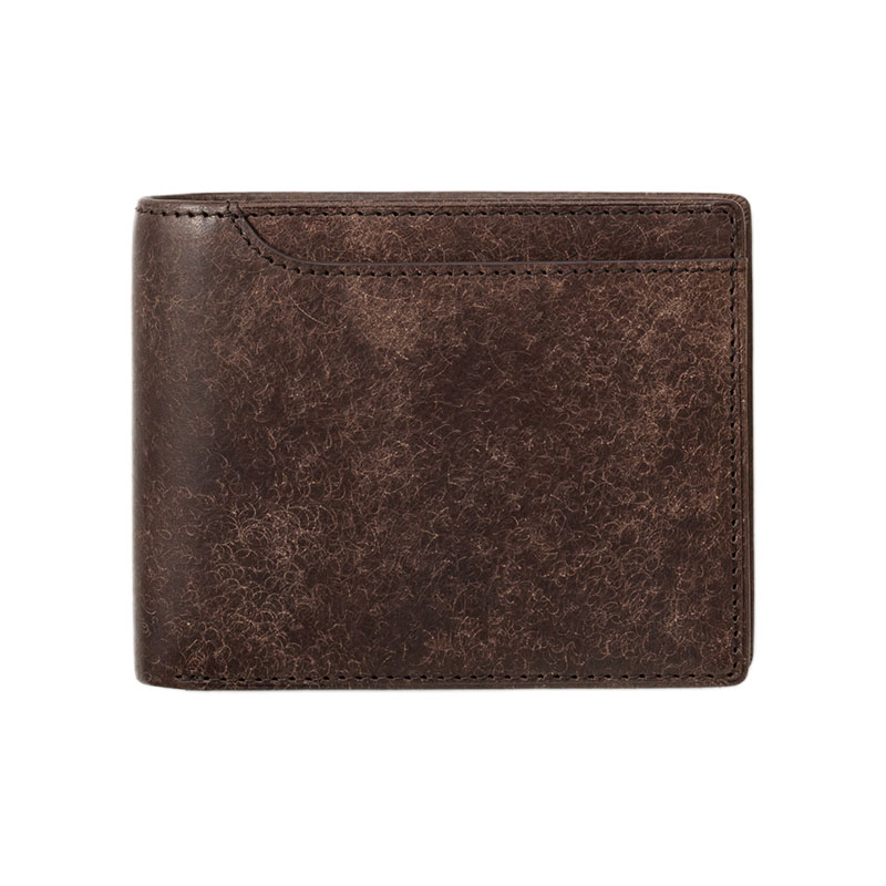 一番使いやすいとされ、贈り物にも選ばれやすい小銭入れ付きの2つ折り財布です。フラップ式の小銭入れは大きく開き、小銭の出し入れに便利。豊富な縦横のオープンポケット5つが領収書やクーポンの収納におすすめで、クレジットカードポケットも必要最低限の枚数が収納できるよう4つ付いています。とてもシンプルで使いやすい財布です。ブランドであるMILAGROのロゴは内側に小さく素押しされています。