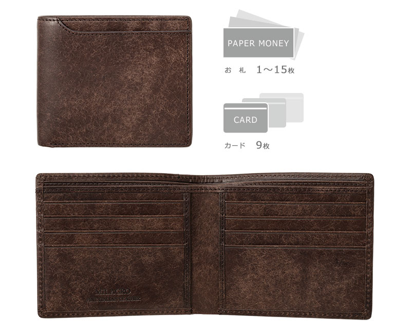 | 仕 様 | 外側:カードポケット×1 内側:札入れ×1(仕切りあり)、カードポケット×8、オープンポケット×2 |