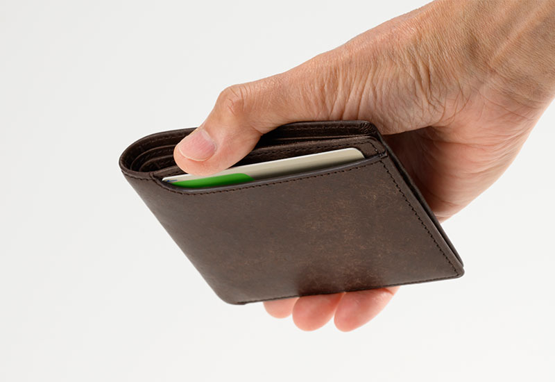 財布の前面にはICカード用のポケットが付いています。鞄から財布をさっと取り出し、財布をかざすだけ。自動改札でそのままタッチ&ゴーでスムーズに入出が可能なほか、タクシーでの支払い、コンビニでの会計などキャッシュレスで重宝します。