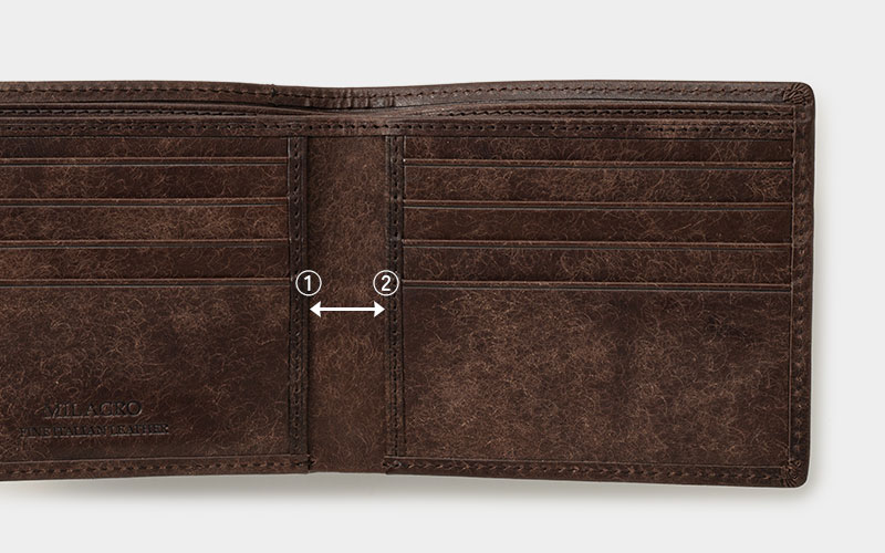 POINT2. 仕切り付き札入れでスマート収納