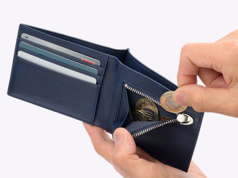 必要以上に小さくしたり薄くするために、芯材やライニング(内生地)を省くことで耐久性や使い勝手が悪くなることがあります。しかし、この財布は従来のしっかりとした作りで、しかも丈夫で薄いのが特長の財布です。内部は片側がカード段で、もう片方が小銭入れという従来の財布のレイアウト。しかし、使用しているファスナーは、平らな形状のファスナーで折り畳んでも厚くならない丈夫なYKKファスナーを使用しています。また、札入れは薄さを追求するために仕切りを省きました。キャッシュレスの方だけでなく、小銭入れがないと少し不安な方にもおすすめの薄財布です。