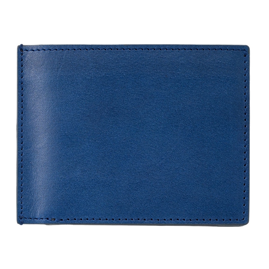 1枚の革を折り曲げるのでなく、あえて2枚の革を合わせ縫製した財布です。2つ折り財布の”折り”部分がフラットな形状で、ポケットに入れても邪魔にならず出し入れも容易です。