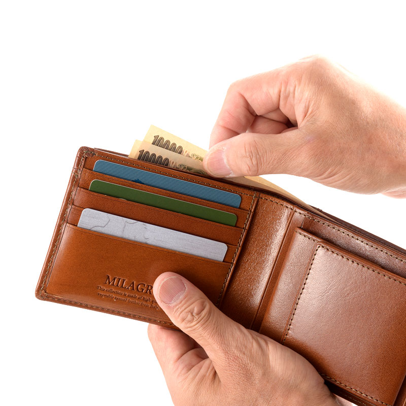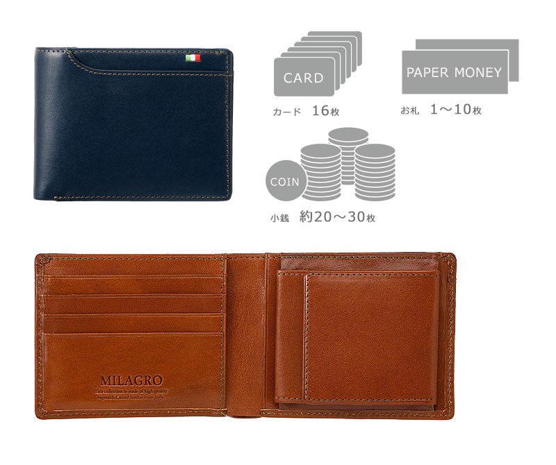 MILAGRO・イタリアンレザー2つ折り財布 BOX小銭入れ付き