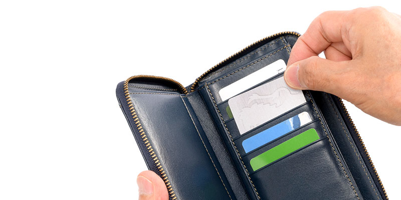 ラウンドジップを開ければ大きく開いて、財布の中をパッと見渡せます。札入れ部分と小銭入れ部分が独立しているのも大きな特徴。 小銭入れは右手で取り出しやすいよう左にフラップが開くように設計されています。 9枚のカード入れ、オープンコンパートメントと札入れでしっかり整理可能。 外側表面にはICカード等が入るポケット付きなので、さっと取り出して駅の改札もスムーズに通過できます。