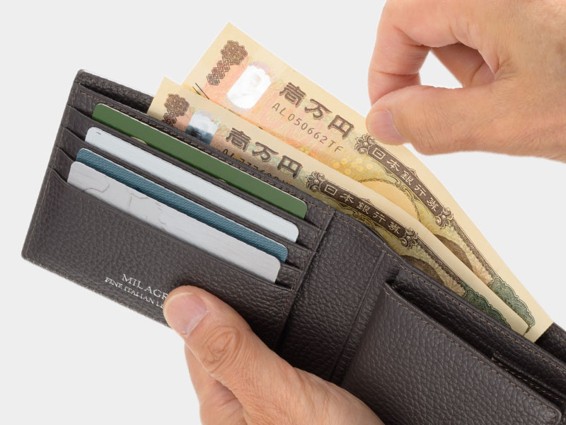 POINT3. 仕切り、カードポケット付き札入れで スマート収納
